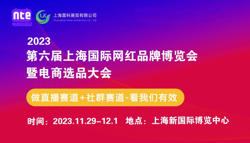 2023第六届上海国际网红品牌博览会暨电商选品大会将于2023年11月29-12月1日在上海浦东新国博览中心举行。