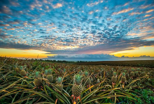 广东湛江徐闻县被誉为“中国菠萝之乡”,春日里,温润的海风轻拂着这个滨海小县,灿烂的阳光洒满大地,每年的2到6月正是菠萝陆续成熟上市的时节,无边无际的丘陵山野呈现五彩各异的色块,红土地上描绘着这片中国最为壮美的菠萝田园画卷。