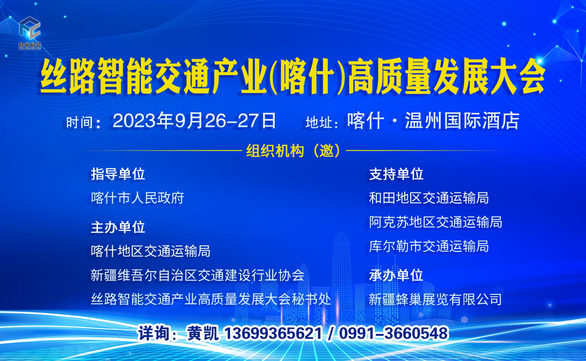 随着“一带一路”的深入实施和中国—中亚峰会的成功举办, 为中国新疆喀什同中亚、南亚合作搭建了新平台、开辟了新前景、 迎来了新机遇。为加强与中亚、南亚国家的交通产业合作,全面 提升我区南疆地区交通产业特别是公路建管养的科技化、信息化、 智能化水平,推广国内外智慧交通有关单位先进技术与装备在南 疆交通行业应用,助力新疆交通强国建设迈向新征程。拟由喀什 市人民政府指导,新疆维吾尔自治区交通建设行业协会、喀什市 交通运输局主办,喀什公路管理局、阿克苏公路管理局、巴州交 通运输局等单位支持的“丝路智能交通(喀什)高质量发展大会 暨优秀企业推介会”于 2023 年 9 月 26-27 日在喀什举办。会场还 1将举行“行业优秀企业”颁奖授牌仪式。 大会将重点邀请相关院士、国家交通部、发改委相关部门, 自治区有关部门,有关专家、学者及企业代表等参会。喀什地区 当地有关部门主管领导、交通局、建设局、公路管理局、交通警 察支队和南疆其他地州、兵团;市主管领导、交通局、建设局、 公路管理局、交通警察支队及工程总承包商等,同时大会还将展 示有关工程建设、企业形象、交通安全、智能交通、智能停车、 道路养护装备及服务等。为更好的扩大交流、推动创新、促成合 作。我们诚挚邀请贵单位参加本次大会及相关活动。