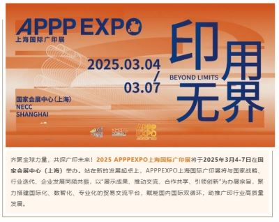 2025 年 3 月 4 日至 7 日,APPPEXPO 上海国际广印展在国家会展中心(上海)举行,将与多方面同频共振,以特定宗旨搭建贸易交流平台,助力广印行业高质量发展。