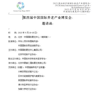 由北京市老龄产业协会和中国国际展览中心集团公司联合主办的“第四届中国国际养老产业博览会/第九届中国(北京)国际老龄产业博览会”将于2022年5月26—28日在中国国际展览中心(静安庄)隆重举办。